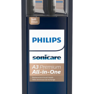 Cabeças de escova de dentes de reposição multifuncionais Philips Sonicare genuínas A3 Premium, 2 cabeças de escova, pretas, HX9092/95 – Remove até 20 vezes mais placa bacteriana do que uma escova de dentes manual – Gengivas até 15 vezes mais saudáveis em 6 semanas versus uma escova de dentes manual – As pontas triangulares eliminam manchas para obter dentes mais brancos em apenas 2 dias (versus uma escova de dentes manual, com creme dental clareador) – Modo BrushSync lembretes de fiação e substituição quando usada com uma alça compatível com BrushSync – Cabeça de escova de dentes elétrica recarregável Philips Sonicare original compatível com todos os dispositivos recarregáveis por clique da Philips Sonicare alças de escova de dentes – Assine e economize em substituições originais da cabeça de escova Philips Sonicare e economize até 15%.