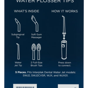 Cabeças de reposição Interplak by Conair Water Flosser, pacote com dois cabeçotes de reposição para irrigador oral — Cinco pontas de reposição para usar fio dental: inclui 2 pontas de escova de tamanho normal, 1 ponta de jato de água padrão, 1 ponta de massagem gengival e 1 ponta subgengival — Compatível com todos os modelos de jato de água dental Interplak: WJ3, WJ6, WJ7, WJ8, WJ10, SWJ1, SWJ2, WJ5, WJ7 X01 – Codificado por cores: codificado por cores para usuários individuais