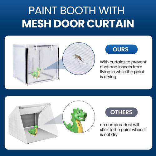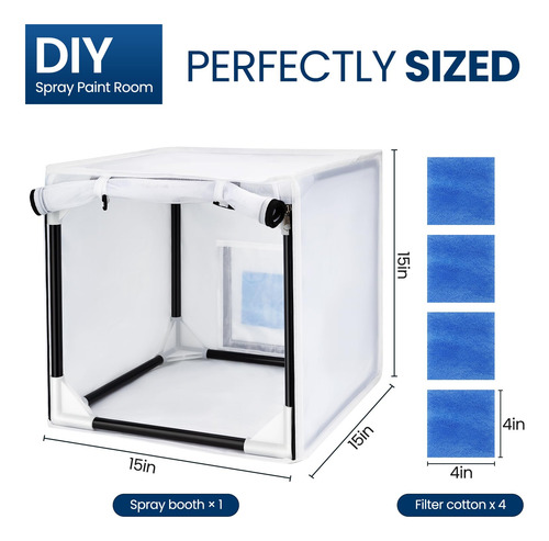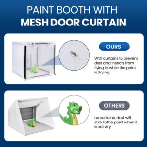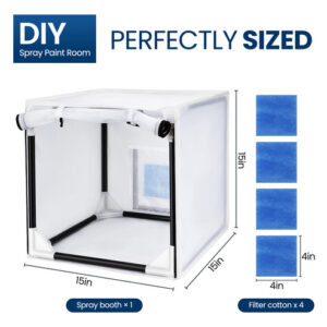 As cabines de pintura com aerógrafo são ferramentas essenciais para artistas, amadores e profissionais que trabalham com tintas spray ou aerógrafos. Esses espaços fechados fornecem um ambiente controlado para conter o excesso de pulverização e proteger a área circundante das partículas de tinta. Com ventilação e iluminação adequadas, as cabines de pulverização com aerógrafo permitem uma aplicação precisa e uma cobertura uniforme em uma variedade de superfícies. Se você está personalizando peças automotivas, criando obras de arte complexas ou aplicando acabamentos em modelos e artesanatos, esses estandes oferecem um espaço de trabalho seguro e eficiente. Invista em uma cabine de pintura com aerógrafo de qualidade para elevar seus projetos e obter resultados de nível profissional com facilidade. – Fácil montagem: a cabine é fácil de montar e armazenar. Ela pode ser montada em menos de um minuto. – Design exclusivo da cortina: após a pintura, os itens precisam de tempo para secar. – O abrigo da cabine de pintura com aerógrafo possui uma pequena cortina de malha com zíper na frente, evitando que poeira e insetos caiam na tinta úmida. – em 15 x 15 polegadas x 15 polegadas Quatro filtros de reposição Tecido Oxford PA 190T, – Material: a cabine de pintura Airbrush usa tecido 190T PA Oxford, que é mais durável e mais fácil de limpar e armazenar em comparação com outras cabines de pintura de plástico. – Aplicação: pode ser usada para pintar modelos, carrinhos de brinquedo com controle remoto, camisetas, bolos, peças pequenas de cerâmica e outros projetos de bricolage. Esta cabine de pintura ideal para hobby é adequada para todos os seus projetos de arte e artesanato!