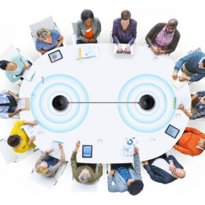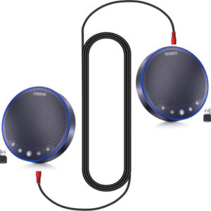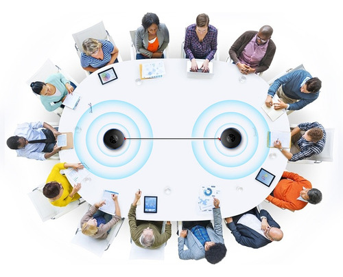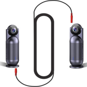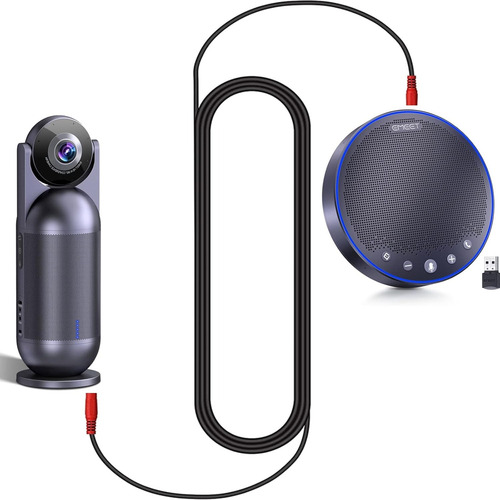 O cabo de ligação em cascata EMEET pode ser usado para conectar em cascata até 2 produtos EMEET para expandir a gama efetiva de conferências híbridas.