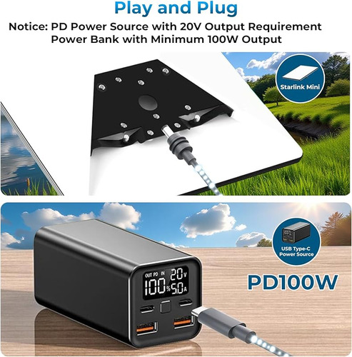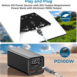Compatibilidade de alta potência: este cabo USB-C para DC de 10 pés funciona perfeitamente com bancos de energia de 100 W ou carregadores PD, fornecendo a energia consistente de 20 V necessária para manter seu Starlink Mini on-line em qualquer local