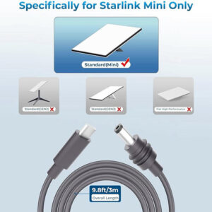 Cabo Starlink Mini de 9,8 pés, cabo de alimentação Starlink Mini USB C para DC, compatível com banco de energia de 100 W e carregador PD (9,8 pés/3 M)