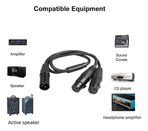 Función: El cable puede dividir la interfaz XLR de 3 pines de micrófonos, mezcladores, etc. en dos.