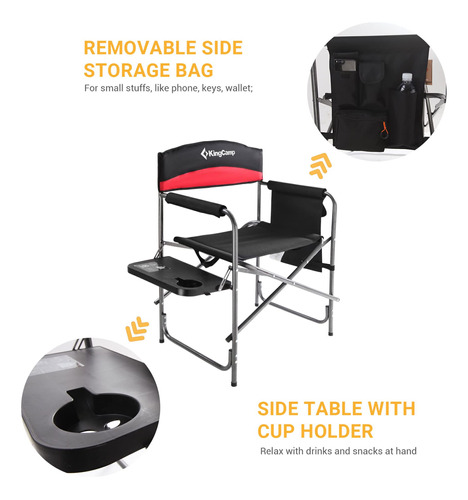 Esteja você partindo para uma aventura de acampamento ao ar livre ou sentado em seu evento esportivo favorito, as 2 cadeiras dobráveis acolchoadas da KingCamp serão o lugar ideal para relaxar seus pés. Projetadas para o máximo conforto, essas cadeiras diretoras apresentam tecidos de camada dupla com acolchoamento cobrindo os apoios de braços e o encosto para mantê-lo bem preparado durante toda a viagem de acampamento, enquanto os apoios de braços sólidos também ajudam você a entrar e sair da cadeira com facilidade. Construídas com uma estrutura de liga de aço resistente e uma estrutura de barra horizontal combinada com coberturas de 4 pés, essas cadeiras oferecem maior durabilidade e estabilidade segura, embora ainda sejam leves. Essas cadeiras específicas são feitas para suportar até 400 libras. Incluindo uma mesa lateral com um porta-copos integrado e um bolso lateral removível, você terá convenientemente tudo o que precisa ao seu alcance para um dia perfeito ao ar livre. Quando não estiver em uso, dobre a cadeira e simplesmente transporte-a com a alça de transporte embutida. Atualize sua experiência de sentar ao ar livre com a cadeira KingCamp Camping Directors. Desde sua construção robusta e conforto acolchoado até a mesa lateral e os bolsos de armazenamento, cada recurso foi projetado para melhorar seu relaxamento ao ar livre. Descubra a combinação perfeita de durabilidade, conforto e portabilidade neste item essencial para acampar. – Cadeiras que economizam espaço: o conjunto de 2 cadeiras para diretores é uma excelente opção para sua próxima viagem de acampamento, oferecendo assentos dobráveis que suportam até 396 libras – Acolchoadas para maior conforto: assento acolchoado, encosto e apoios de braços confortáveis para cadeiras externas elevam sua experiência de sentar, tornando-a mais agradável, confortável e relaxante – Cadeira facilmente dobrável: dobrável para facilitar a portabilidade, garantindo que você possa facilmente levar essas cadeiras de acampamento leves para onde quer que esteja aventuras levam você – Mesa lateral para bebidas: possui uma mesa lateral dobrável com porta-bebidas para facilitar o acesso às bebidas e bolsos laterais de armazenamento para itens pequenos, como telefones e carteiras – Medida do item: perfeita para acampamentos, eventos esportivos ou atividades ao ar livre; altura do assento: 17,7 polegadas Dimensões de comprimento 19,6 por largura 23,8 por altura 36,6 polegadas; dimensões, embaladas de 32,6 por largura 5,5 por altura 19,6 polegadas, pesa 9,7 libras