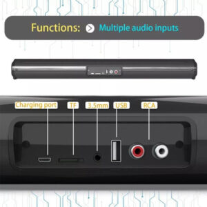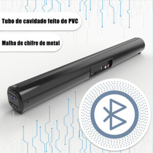 9. Entrada de áudio: Bluetooth, RCA, auxiliar de 3,5 mm, cartão TF, USB 10. Dimensão: 550 x 50 x 50 mm / 21,65 polegadas x 1,97 polegadas x 1,97 polegadas 11. Peso líquido: 585g