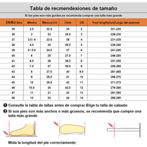 Temos tamanhos padrão internacionais (tamanhos mexicanos). Se você tiver alguma dúvida sobre os tamanhos, peça o tamanho de acordo com o comprimento do seu pé.