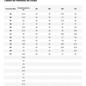 MX28=EU43=BR41=Comprimento do pé (do dedo do pé ao calcanhar) 26,5 cm