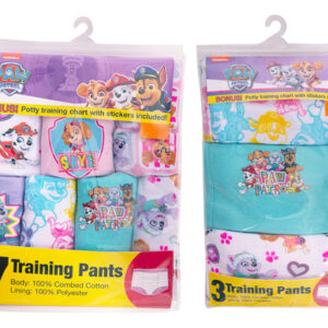 Paw Patrol Girls Toddler Potty Training Pants With Chase, Skye & More With Success Chart & Stickers Size 18, 2T, 3T, 4T, 10-Pack, 3T – THIS PAGE IS SELLING SIZE 3T COTTON COMFORT: The Paw Patrol potty training underwear for girls or boys has an ultra-soft combed cotton outer shell and 100% Polyester lining on the crotch area. The part of the garment that touches the skin is 100% cotton – the polyester mesh is inside. – STRESS-FREE TRANSITION: Our training panties are designed so your little one will feel accidents and be compelled to act upon small leaks. This is a big change for them, use fun potty training pants to slowly introduce the idea! Machine washable. – FREE CHART & STICKERS: These toddler training pants include a handy potty training chart and stickers that you can use to track their progress and success! Playfully bridge the gap between diapers & underwear through Bluey potty training panties. – TAGLESS PULL ON CLOSURE: To ensure maximum comfort, Paw Patrol toddler training underwear features a tagless, soft rib-knit waistband and leg openings. Pull-on training underwear also makes it easier for your toddler to go to the bathroom all by themself! – OFFICIALLY LICENSED DESIGN: Let your favorite Paw Patrol Characters Marshall, Chase, Sky and others help potty train your baby! Inclusive of 3, 7 or 10 toilet training pants in multiple colors, printed with their favorite cartoon characters from Bluey books and show. Available in sizes 18 Month, 2T, 3T and 4T
