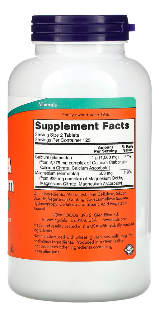 Cálcio E Magnésio 500/250mg Now Foods 250 Tabs +porta Cáps