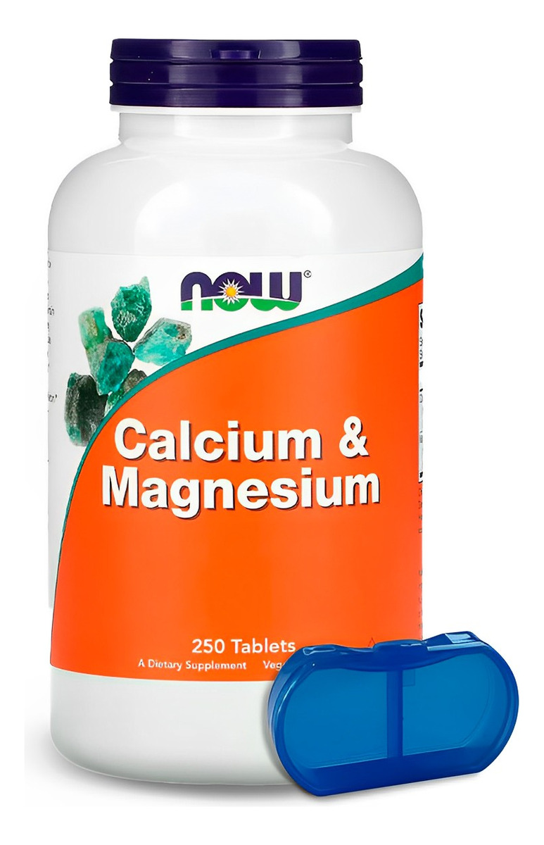 Cálcio e Magnésio 500/250mg Now Foods 250 Tabs Importado + Porta Cápsulas