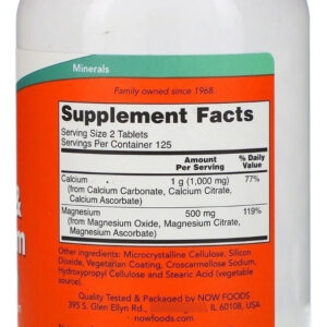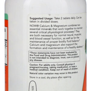 NOW® Calcium & Magnesium combina dois minerais essenciais que trabalham juntos para manter vários processos fisiológicos críticos. Ambos são necessários para a função neural, muscular e dos vasos sanguíneos normais, bem como para a manutenção do equilíbrio adequado dos fluidos corporais. O cálcio e o magnésio também auxiliam na formação e manutenção de um esqueleto saudável.