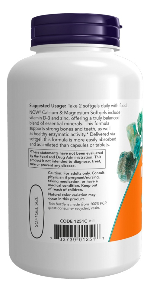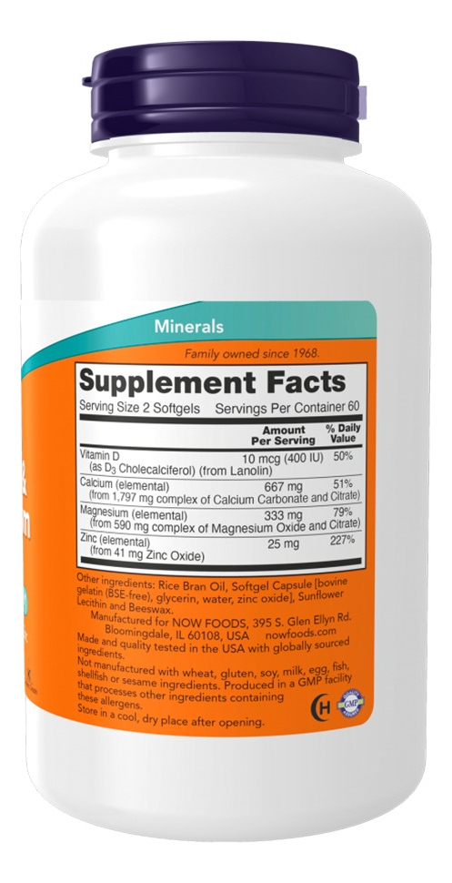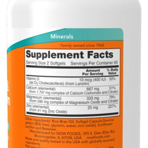 Cálcio e Magnésio Now Foods com Vitamina D3 e Zinco 120 Softgels – Importado