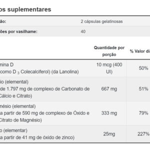 A Now Foods apresenta Cálcio e Magnésio com Vitamina e zinco, disponível em uma embalagem com 120 cápsulas, sendo que cada cápsula é formulada para fornecer um equilíbrio nutricional ideal;