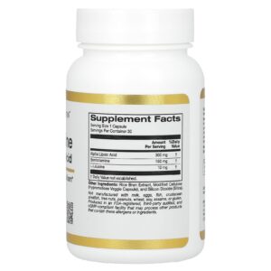 California Gold Nutrition Benfotiamina + Ácido Tióctico e L-Leucina 30 Cápsulas Vegetais – California Gold Nutrition Suplementos Antioxidantes Benfotiamina Ácido alfa lipoico.