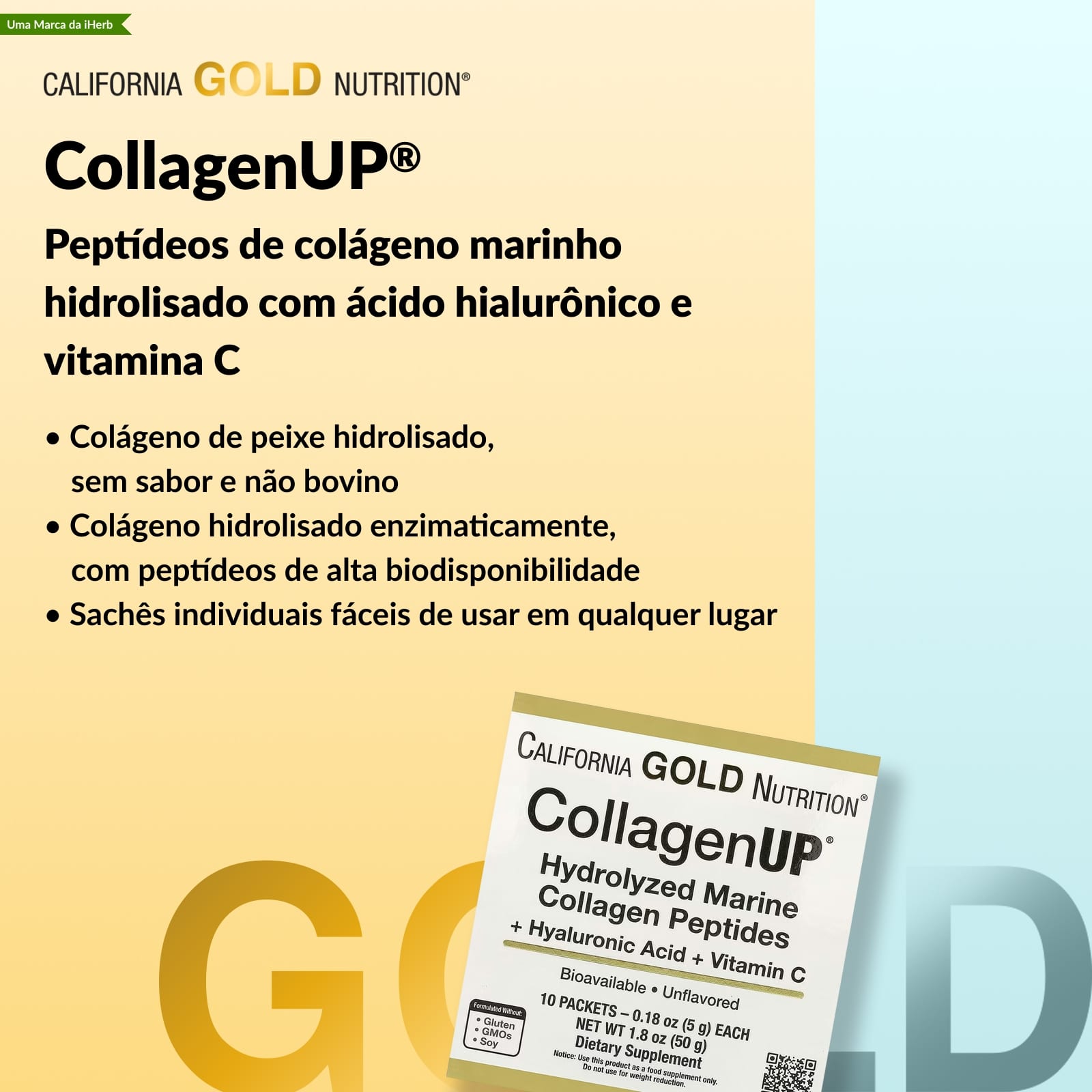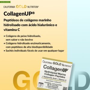 California Gold Nutrition CollagenUP® Peptídeos de Colágeno Marinho Hidrolisado com Ácido Hialurônico e Vitamina C Sem Sabor 10 Pacotes 5 g (018 oz) Cada – California Gold Nutrition Suplementos Ossos, Articulações e Cartilagem Colágeno, Suplementos Cabelos, Pele e Unhas Ácido hialurônico.