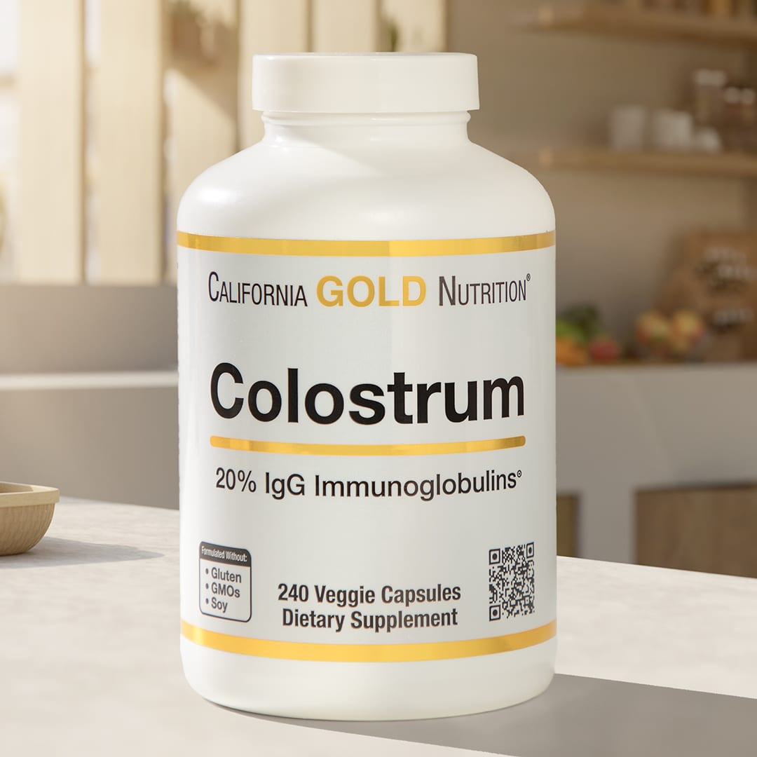 O colostro é um suplemento popular porque contém nutrientes essenciais, como aminoácidos, gorduras e fosfolipídios. O Colostro da California Gold Nutrition® contém colostro proveniente de vacas com Classe A pelo USDA e é processado em baixa temperatura.