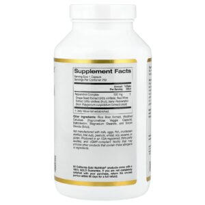 California Gold Nutrition Complexo de Resveratrol com Extrato da Semente de Uva Extrato de Vinho Tinto e trans-Resveratrol 250 Cápsulas Vegetais – California Gold Nutrition Suplementos Antioxidantes Resveratrol Trans-Resveratrol Extrato de semente de uva.