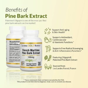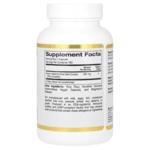 California Gold Nutrition Extrato da Casca de Pinheiro Marítimo Francês Oligopin Polifenol Antioxidante 100 mg 180 Cápsulas Vegetais – California Gold Nutrition Suplementos Antioxidantes Extrato de Casca de Pinheiro.