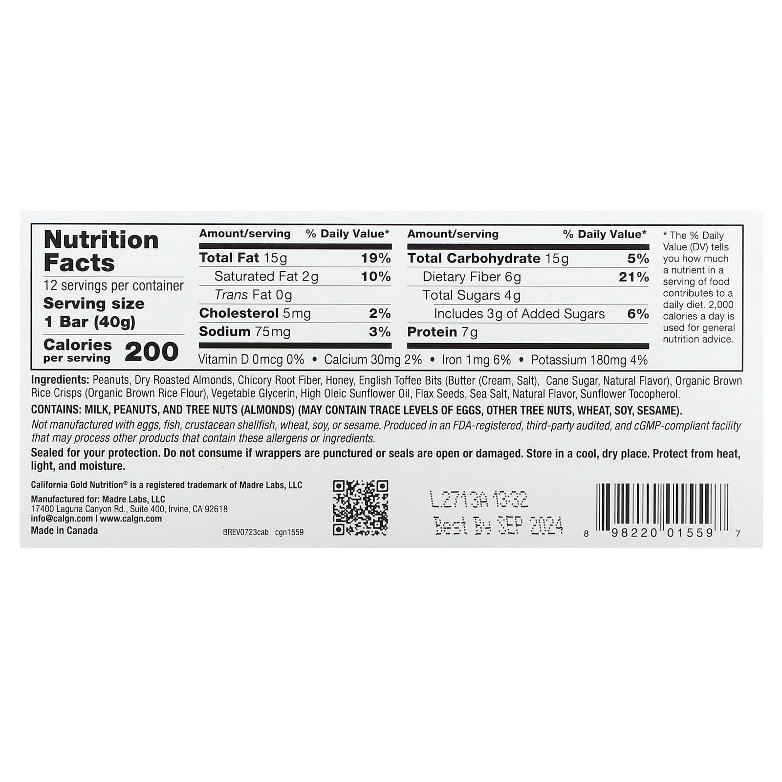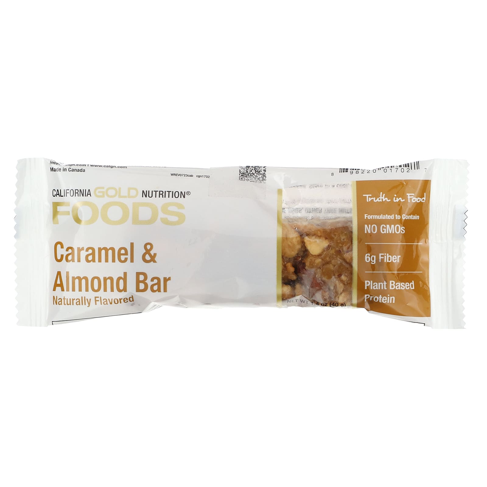 As Barras de Caramelo e Amêndoa da California Gold Nutrition Foods são feitas com ingredientes simples, como amendoim, amêndoas torradas e sementes de linhaça e são naturalmente adoçadas. Cada barra é embalada individualmente, fazendo com que seja um lanche perfeito a qualquer hora e em qualquer lugar.