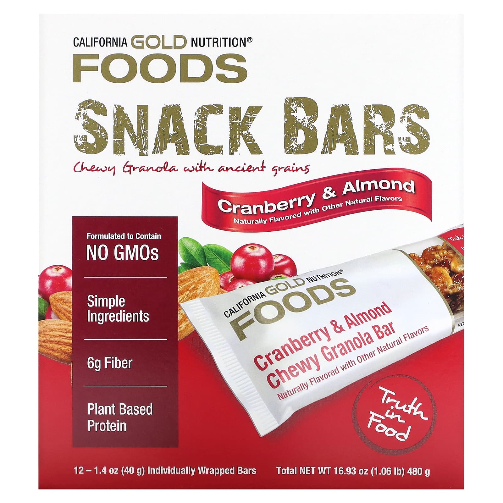 California Gold Nutrition Foods Barras de Granola com Cranberry e Amêndoa 12 Barras 40 g (14 oz) Cada – California Gold Nutrition Alimentos Barras Barrinhas para lanche Nutrição Esportiva Barrinhas e snacks esportivos Barras de Proteína Barras de Proteínas à base de Plantas.