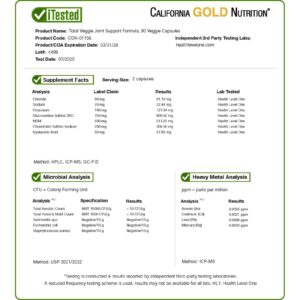 California Gold Nutrition Fórmula de Suporte às Articulações Total Veggie Joint com Glicosamina Condroitina MSM e Ácido Hialurônico 90 Cápsulas Vegetais – California Gold Nutrition Suplementos Ossos, Articulações e Cartilagem Fórmulas de Glucosamina MSM.