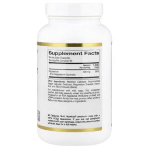 California Gold Nutrition Glicinato de Magnésio 180 Cápsulas Vegetais (133 mg por Cápsula) – California Gold Nutrition Suplementos Minerais Magnésio Glicinato de Magnésio.