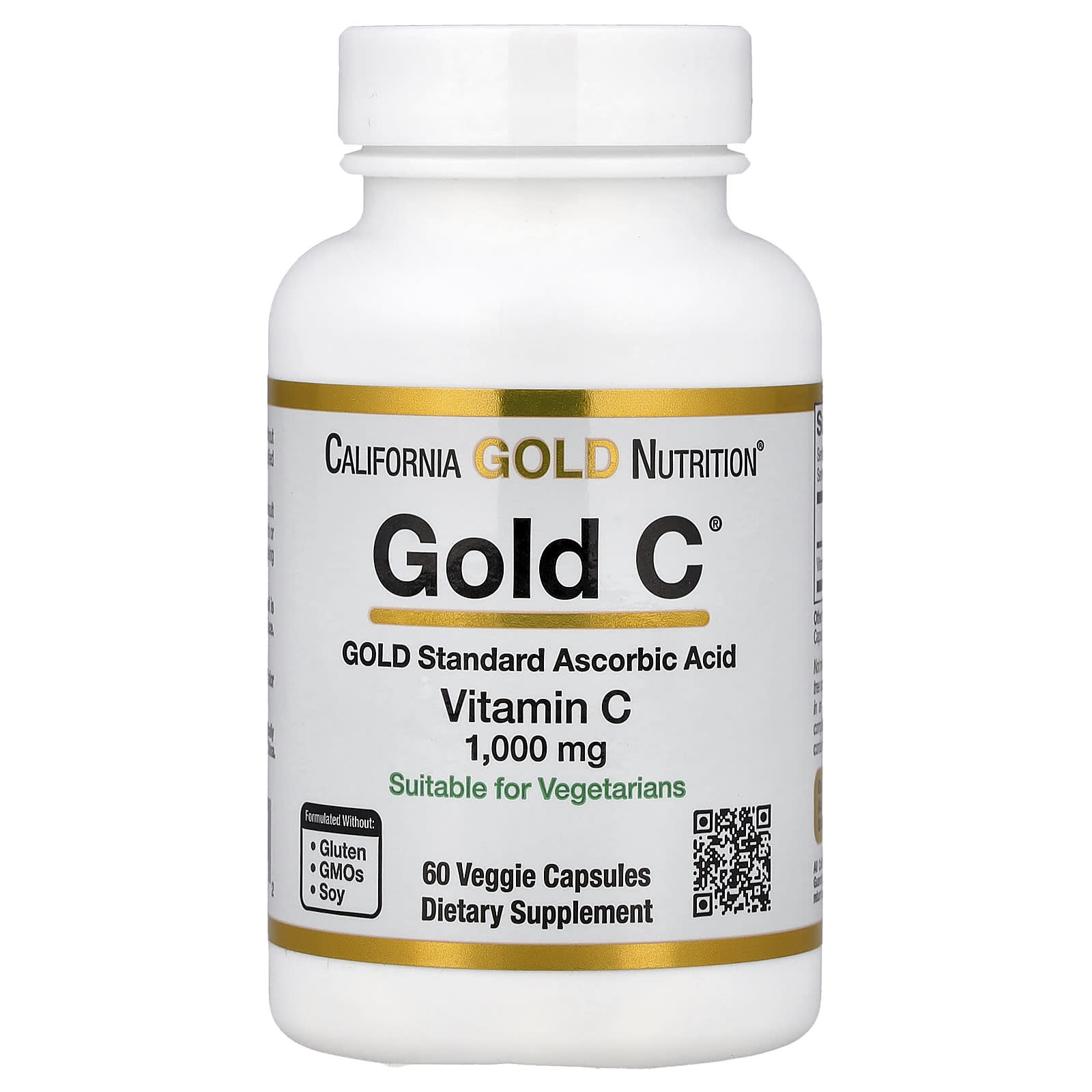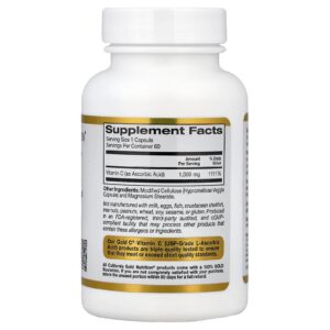 A Gold C™ da California Gold Nutrition® apresenta 1.000 mg de Vitamina C de classe USP em cápsulas vegetais. Ela é submetida a um teste triplo de qualidade para garantir que atenda ou exceda os rigorosos padrões de qualidade.