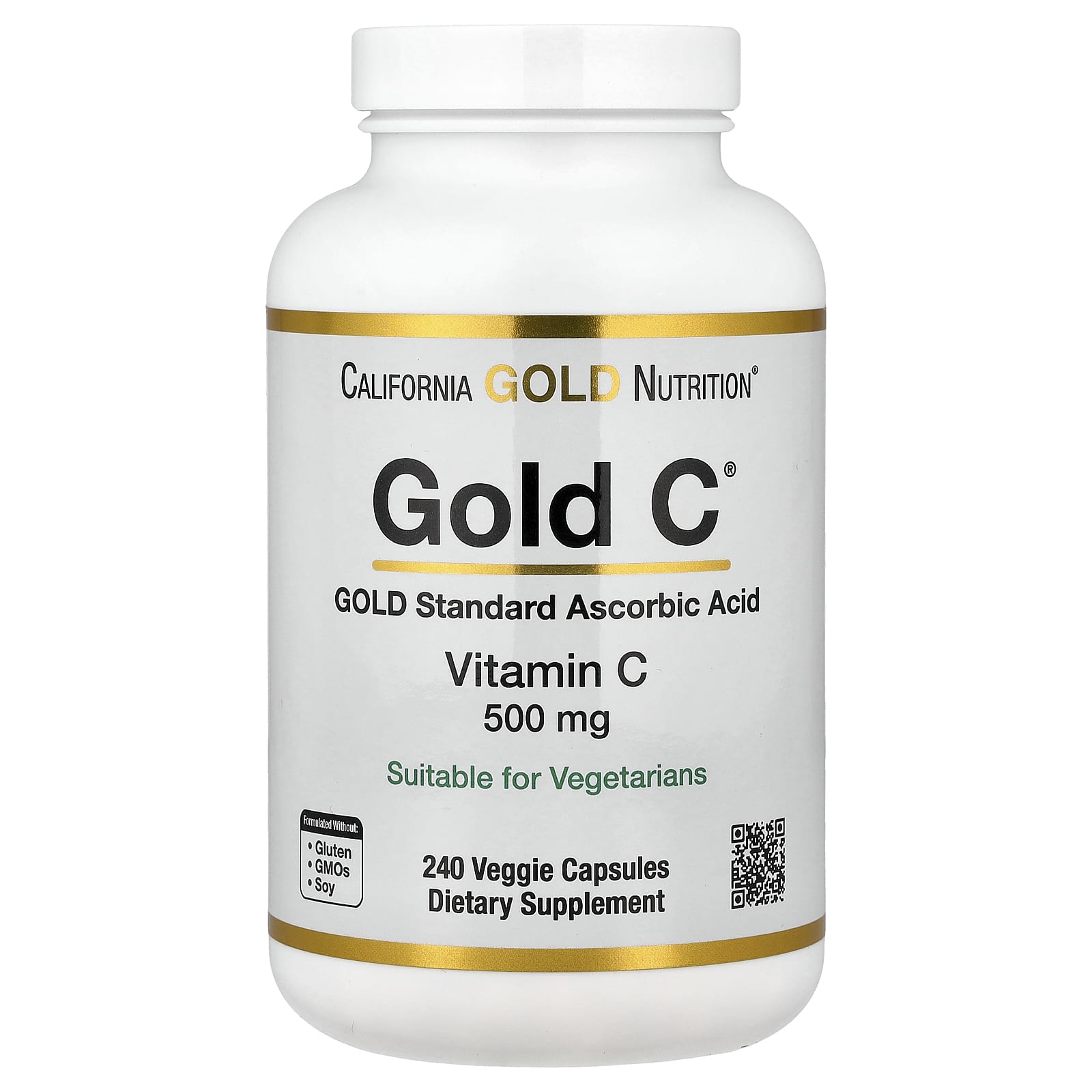 California Gold Nutrition Gold C™ Vitamina C de Classe USP 500 mg 240 Cápsulas Vegetais – California Gold Nutrition Suplementos Vitaminas Vitamina C Ácido ascórbico Saúde Gripe e Resfriado.
