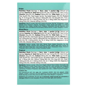 Lactato de Cálcio, Ácido Cítrico, Sabor Natural Orgânico, Gliconato de Sódio, Sal Marinho, Citrato de Magnésio, Suco em Pó de Beterraba Orgânica (corante), Ácido Ascórbico, Cloreto de Potássio, Citrato de Potássio, Mistura de Gomas (Goma Guar, Goma de Acácia, Goma Xantana), Extrato da Folha de Estévia, Fosfato de Potássio, Betacaroteno (para Dar Cor), Acetato de Dextroalfatocoferol.