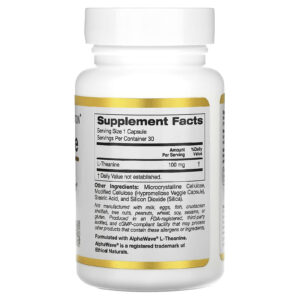 California Gold Nutrition, L-teanina, com AlphaWave, 100 mg, 30 Cápsulas Vegetais – California Gold Nutrition Suplementos Aminoácidos L-Teanina.