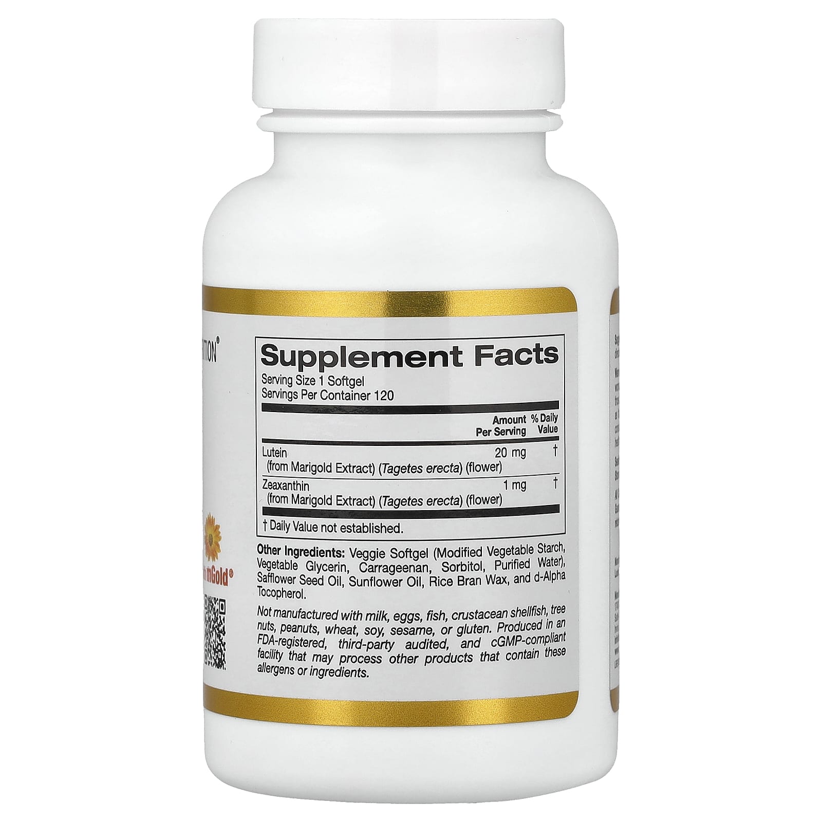 California Gold Nutrition Luteína com Zeaxantina de Extrato de Calêndula 120 Cápsulas Softgel Vegetais – California Gold Nutrition Suplementos Antioxidantes Luteína Luteína e Zeaxantina Zeaxantina.