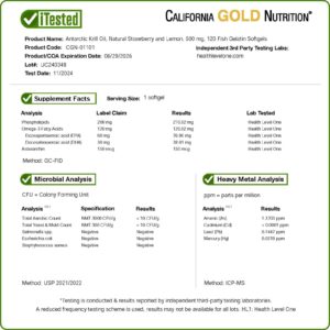 California Gold Nutrition Óleo de Krill Antártico Complexo de Fosfolipídios Ômega-3 com Astaxantina Sabor Natural de Morango e Limão 500 mg 120 Cápsulas Softgel de Gelatina de Peixe – California Gold Nutrition Suplementos Ômegas e Óleos de Peixe (EPA/DHA) Óleo de Krill Ômega 3 e Óleo de Peixe.