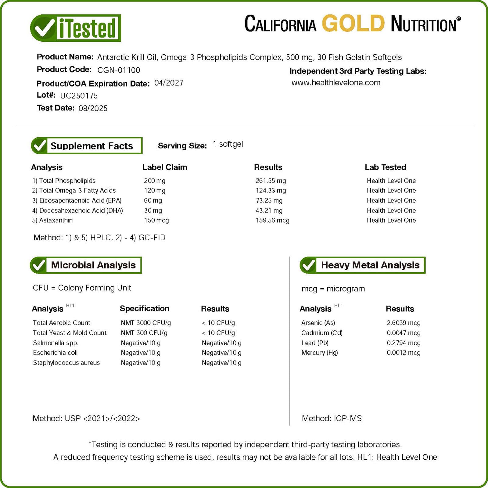 O Óleo de Krill Antártico, 500 mg da California Gold Nutrition® contém óleo de krill premium formulado em um suplemento diário prático para ajudar a promover a saúde do coração, do cérebro, dos olhos e do fígado.*