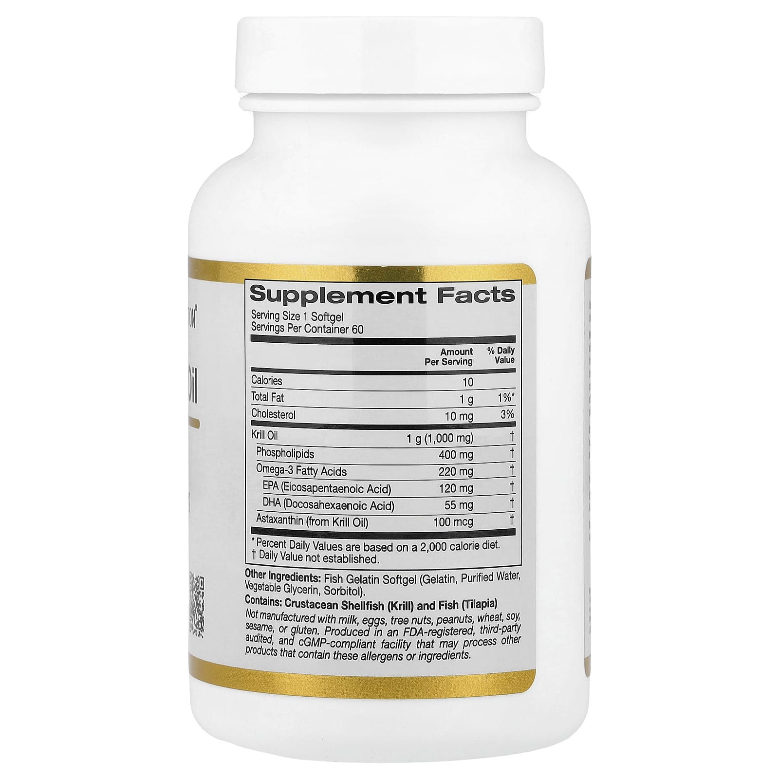 California Gold Nutrition Óleo de Krill Premium com Superba2™ 1.000 mg 60 Cápsulas Softgel – California Gold Nutrition Suplementos Ômegas e Óleos de Peixe (EPA/DHA) Óleo de Krill Óleo de Krill Superba.