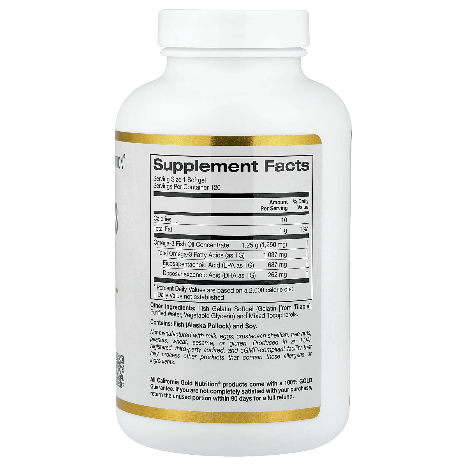 California Gold Nutrition Óleo de Peixe Ômega-3 120 Cápsulas Softgel de Gelatina de Peixe (1.250 mg por Cápsula Softgel) – California Gold Nutrition Suplementos Ômegas e Óleos de Peixe (EPA/DHA) Ômega 3 e Óleo de Peixe.
