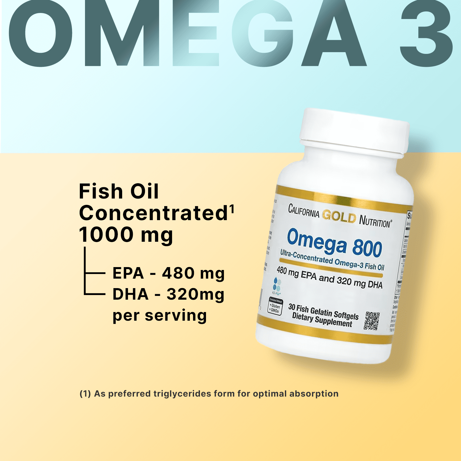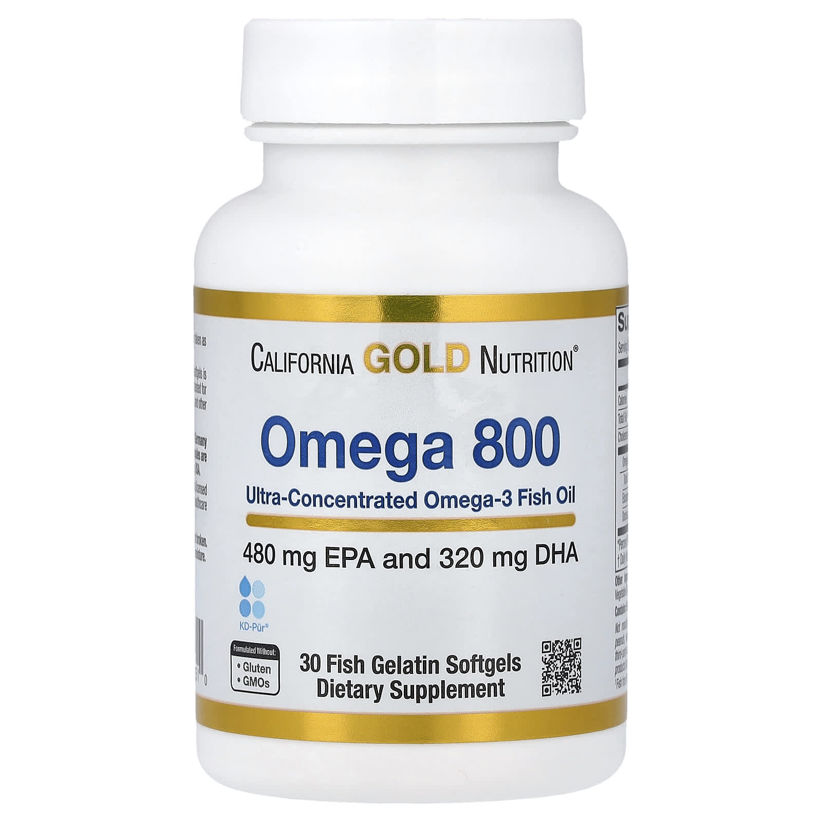 O Óleo de Peixe Ômega-3 Ultraconcentrado Ômega 800 da California Gold Nutrition® é um suplemento diário conveniente que facilita a inclusão de mais ômega-3s em sua dieta, já que foi desenvolvido especificamente para indivíduos que procuram ingerir uma cápsula softgel ultraconcentrada uma vez ao dia.