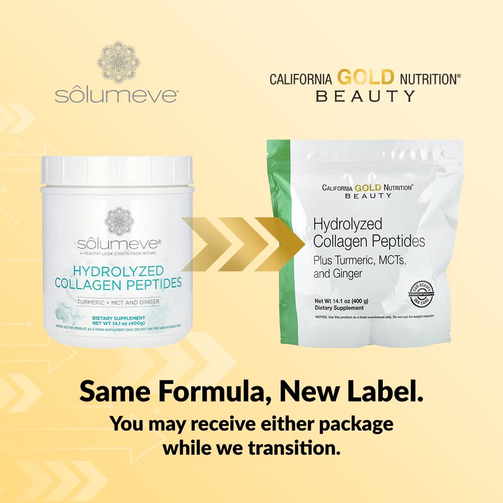Os Peptídeos de Colágeno Hidrolisado da California Gold Nutrition combinam o poder do colágeno com cúrcuma, TCM e gengibre para fornecer vários benefícios em um suplemento prático.