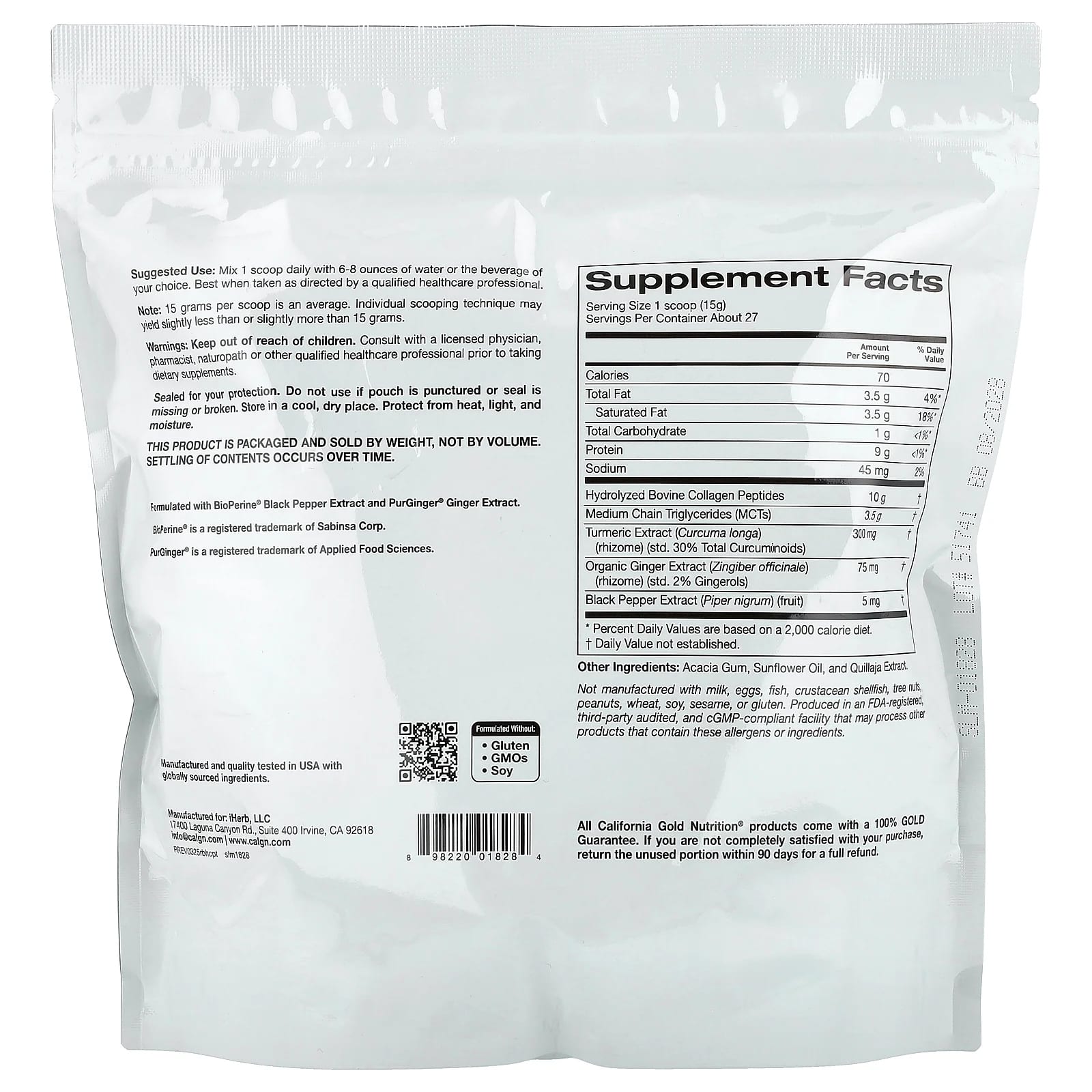 California Gold Nutrition Peptídeos de Colágeno Hidrolisado com Cúrcuma TCM e Gengibre 400 g (141 oz) – California Gold Nutrition Suplementos Ossos, Articulações e Cartilagem Colágeno, Suplementos.
