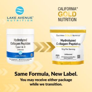 California Gold Nutrition Peptídeos de Colágeno Hidrolisado Tipos I e III Sem Sabor 460 g (101 lb) – California Gold Nutrition Suplementos Ossos, Articulações e Cartilagem Colágeno, Suplementos.