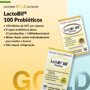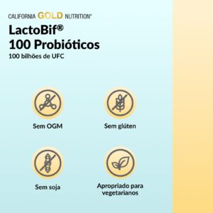 California Gold Nutrition Probióticos LactoBif® 100 100 Bilhões de UFCs 60 Cápsulas Vegetais – California Gold Nutrition Suplementos Saúde Intestinal Probióticos.