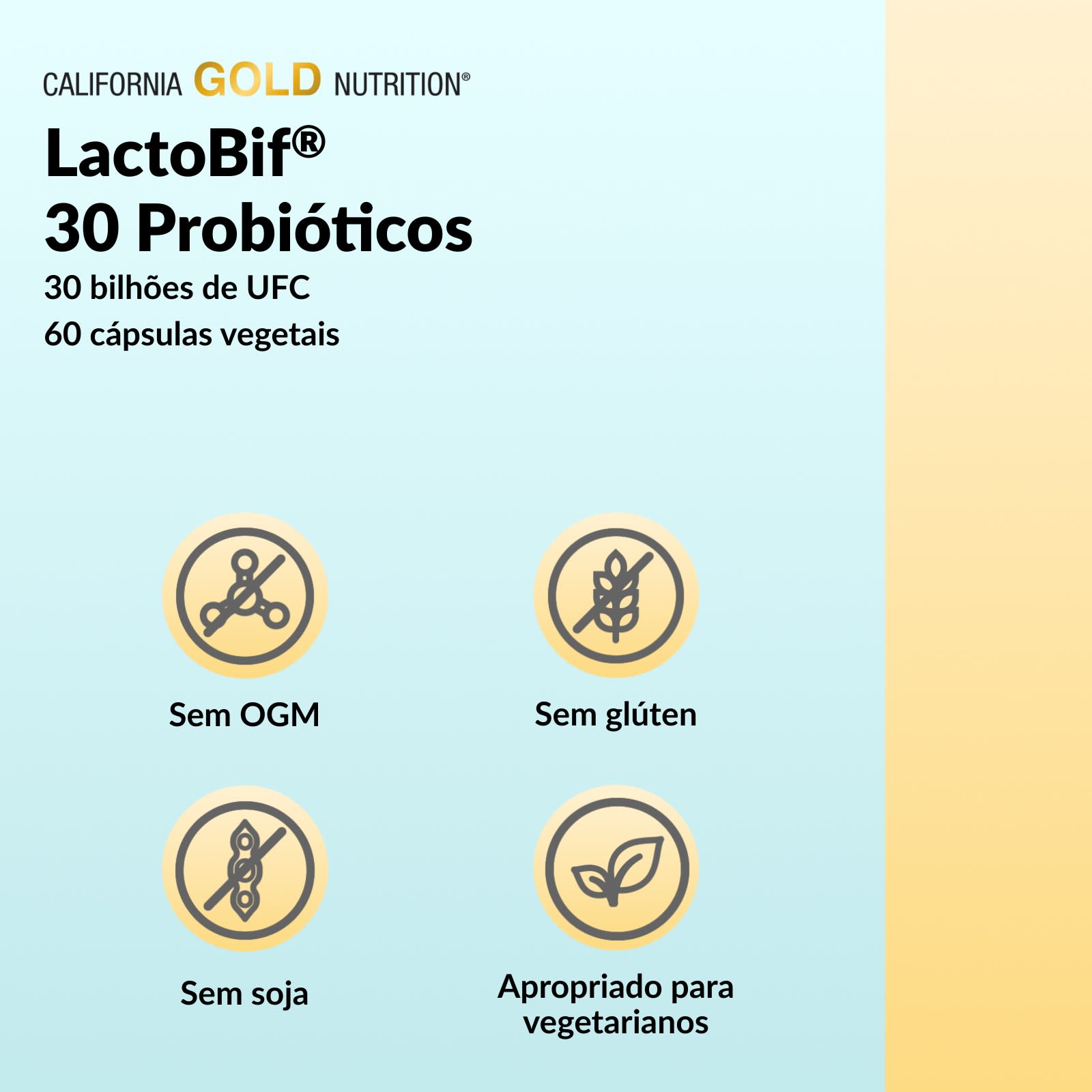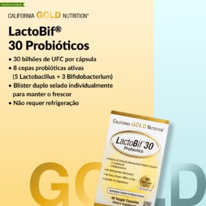California Gold Nutrition Probióticos LactoBif® 30 30 Bilhões de UFCs 60 Cápsulas Vegetais – California Gold Nutrition Suplementos Saúde Intestinal Fórmulas Intestinais Probióticos Lactobacillus.