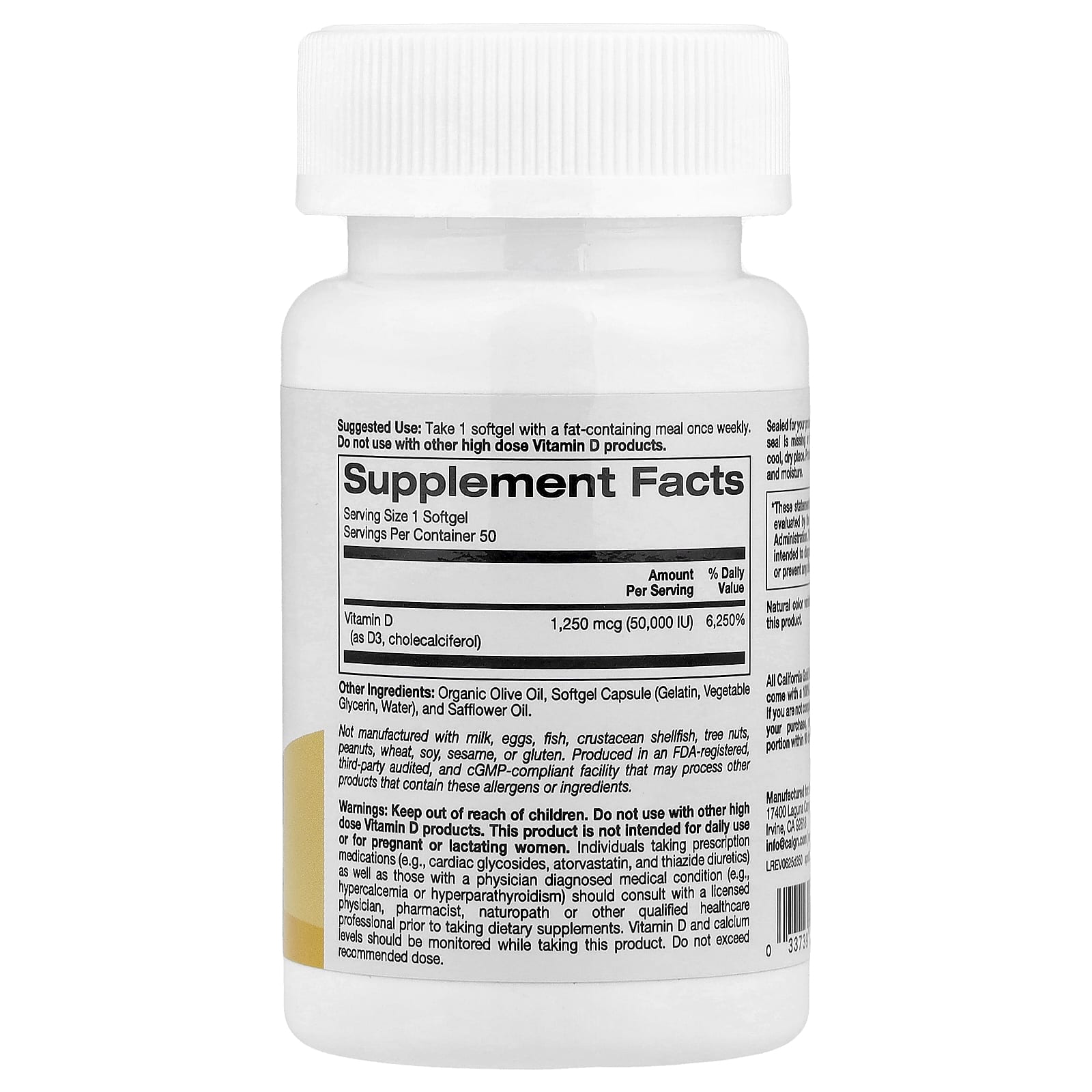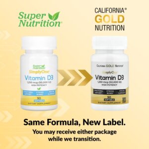 California Gold Nutrition SimplyOne® Vitamina D3 1.250 mcg (50.000 UI) 50 Cápsulas Softgel – California Gold Nutrition Suplementos Vitaminas Vitamina D.