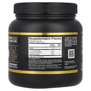 Os BCAAs da California Gold Nutrition são fornecidos exclusivamente pela Ajinomoto e têm os aminoácidos AjiPure® que são produzidos com sua tecnologia patenteada Ferment-A-Pure. É um produto de classe farmacêutica, sem substâncias de origem animal e é adequado para vegetarianos e veganos.
