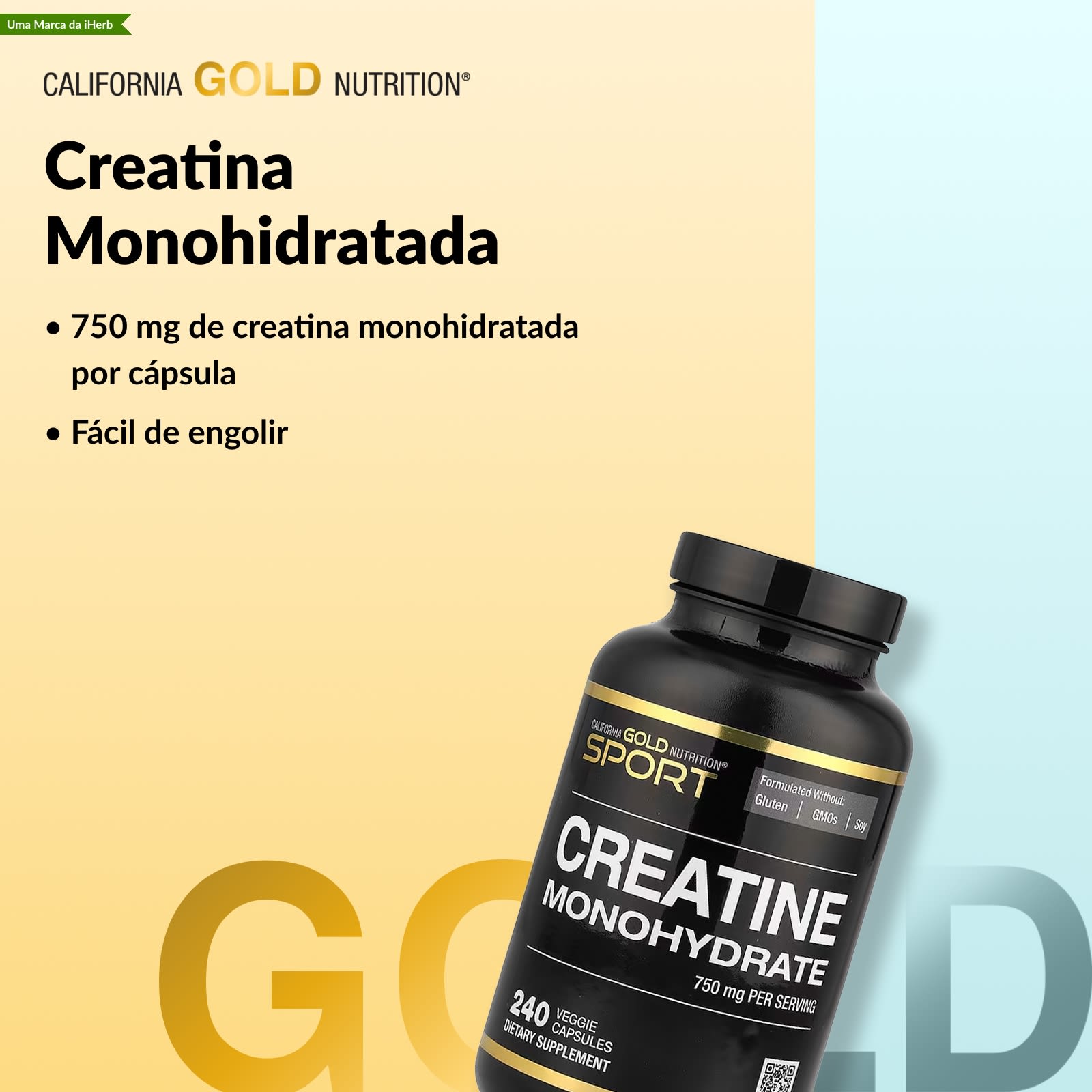 California Gold Nutrition Sport Creatina Mono-Hidratada 750 mg 240 Cápsulas Vegetais – California Gold Nutrition Nutrição Esportiva Creatina Monoidrato de creatina.