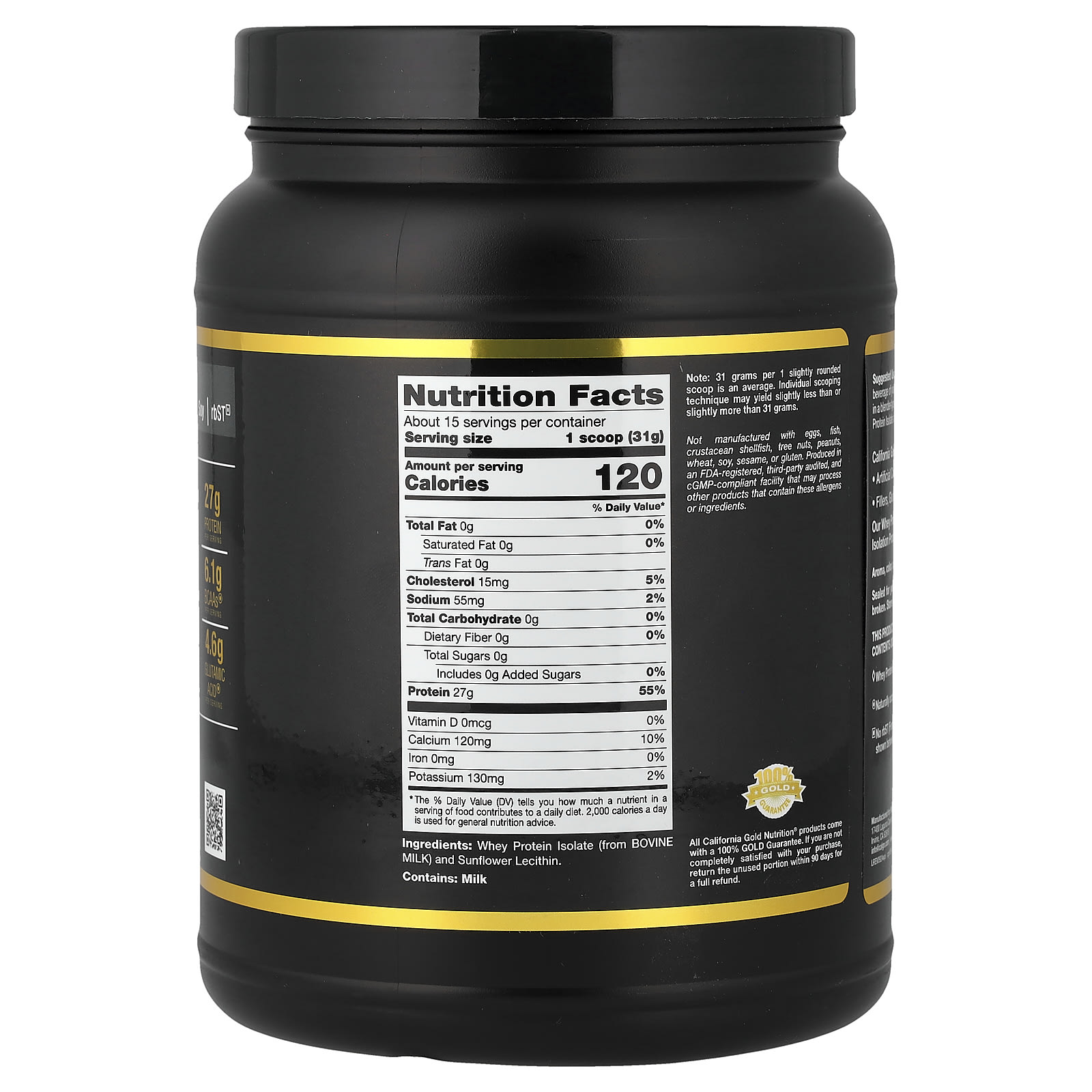 O Isolado de Whey Protein da California Gold Nutrition® Sport contém 27 gramas de proteína, 6,1 gramas de Aminoácidos de Cadeia Ramificada (BCAAs) e 4,6 g de Ácido Glutâmico por porção. Ele contém baixo teor de lactose e é fabricado por um processo de isolamento de microfiltragem a frio em vários estágios, usando tecnologia de membrana de última geração.