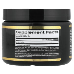 O Sulfato de Agmatina da California Gold Nutrition® auxilia o desempenho atlético ideal e aprimora sua rotina de bem-estar com o Sulfato de Agmatina premium.* Abasteça o corpo e a mente com o energizante Sulfato de Agmatina, conhecido por seus benefícios além do fisiculturismo.* A Agmatina, um metabólito do aminoácido L-arginina, aumenta a produção de óxido nítrico, melhorando o fluxo sanguíneo para os músculos, o cérebro e outros tecidos.* Mais eficaz do que a L-arginina, o Sulfato de Agmatina é o preferido por atletas de resistência e por pessoas que buscam combater a fadiga e melhorar a recuperação.* Esta dose potente de 1 grama (1.000 mg) contribui para a resistência, vitalidade, saúde cardiovascular, memória e humor, tornando-o um suplemento versátil para o bem-estar geral.*