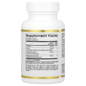 TheanineUp™ da California Gold Nutrition intensifica a combinação da Cafeína do Fruto do Café Orgânico Coffeeberry® Energy e L-Theanine AlphaWave® ao adicionar Cacau Orgânico (Theobroma Cacao) e Chá Verde Matcha Orgânico (Camellia sinensis).
