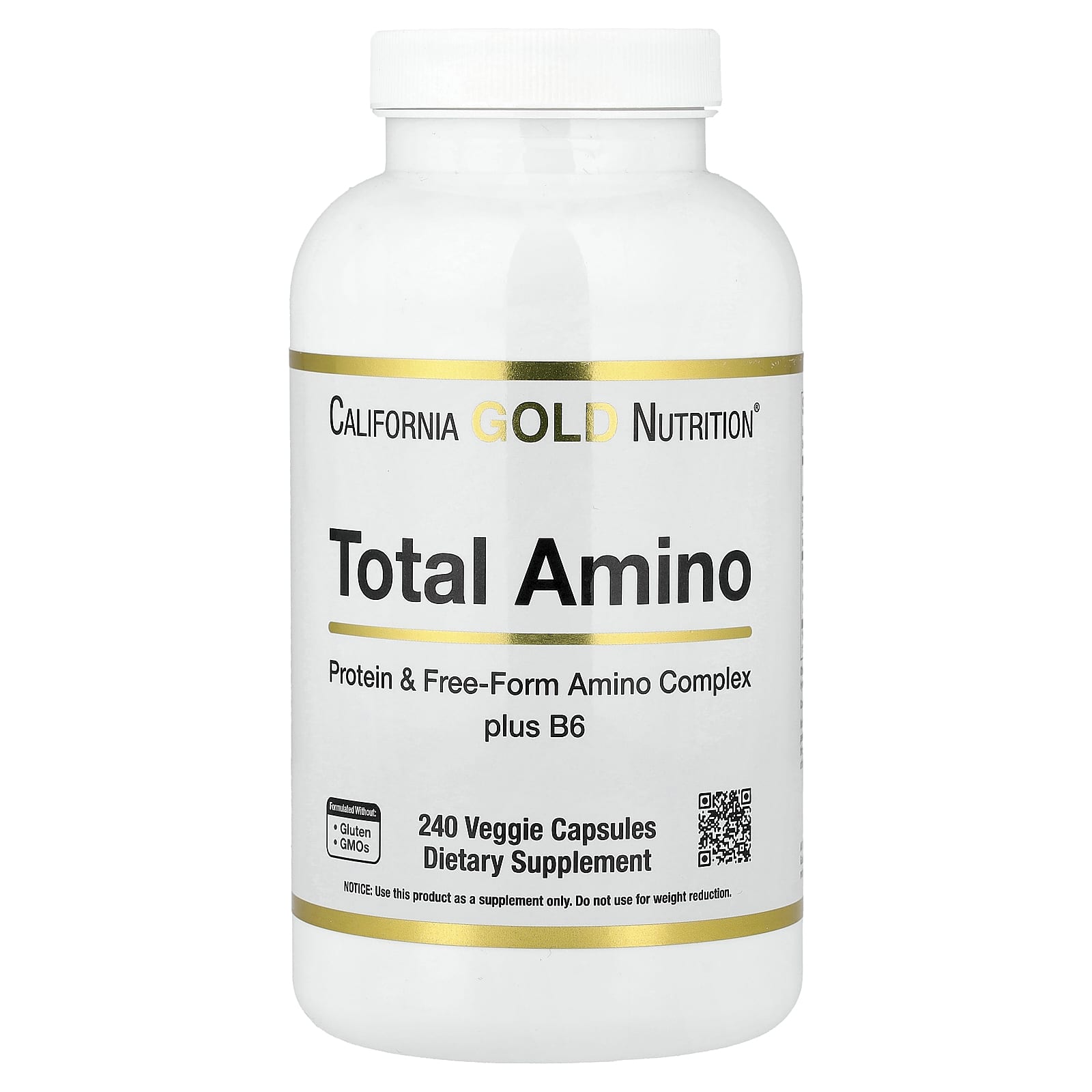 California Gold Nutrition, Total Amino com Vitamina B-6 e Mistura de 20 Aminoácidos, 240 Cápsulas Vegetais
