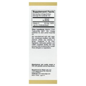 California Gold Nutrition Vitamina D3 Cítricos 30 ml (1 fl oz) – California Gold Nutrition Suplementos Vitaminas Vitamina D.