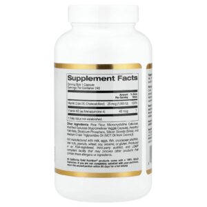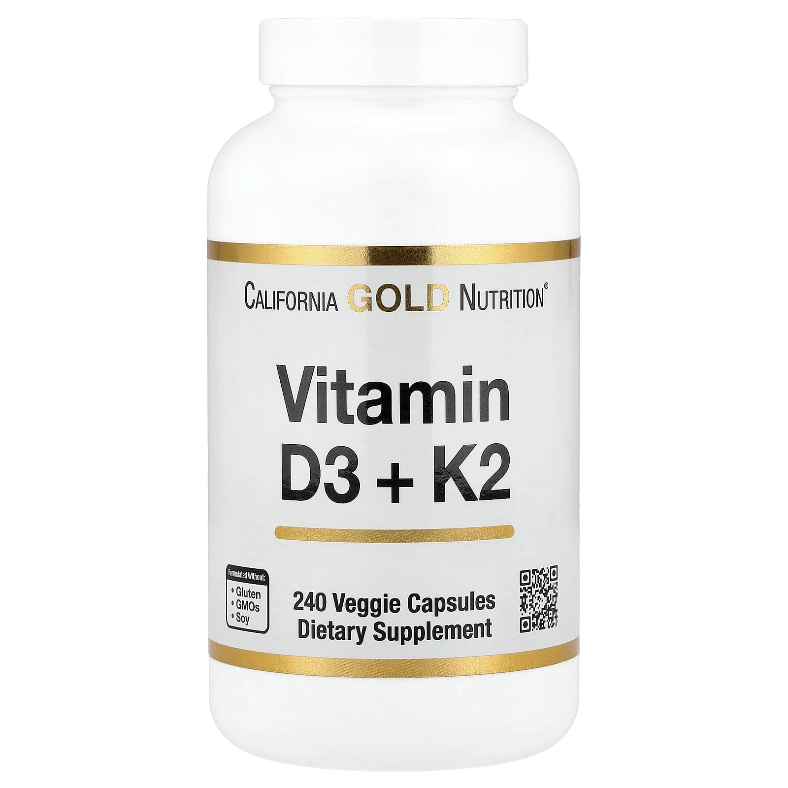 California Gold Nutrition Vitamina D3 + K2 240 Cápsulas Vegetais – California Gold Nutrition Suplementos Vitaminas Vitamina D3 e K2.